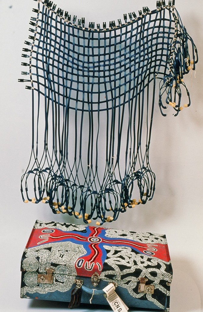 ‘Sacred Cow’. Painted suitcase, Airplane headphones